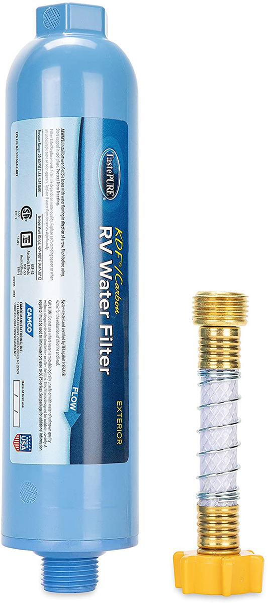 Tastepure Rv/Marine Water Filter with Flexible Hose Protector | Protects against Bacteria | Reduces Bad Taste, Odors, Chlorine and Sediment in Drinking Water (40043)